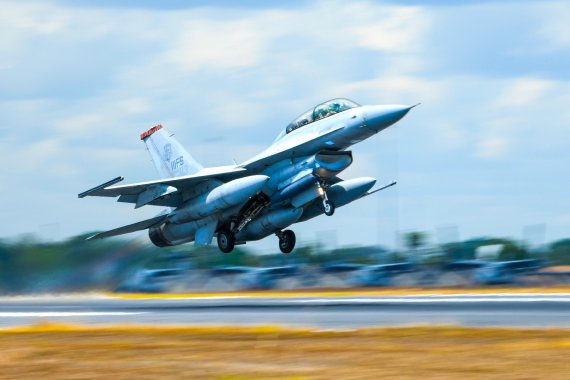 지난 8월 29일(현지시간) 피치블랙 주간 비행훈련에 나선 KF-16 전투기가 호주 다윈기지를 이륙하고 있다. 사진=공군 제공