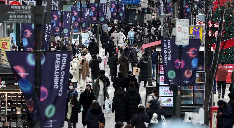 실내서도 마스크 벗을까실내 마스크 의무착용 해제에 대한 기대감이 높아지고 있다. 4일 오후 서울 중구 명동거리가 마스크를 쓴 시민과 외국인으로 붐비고 있다. 사진=뉴시스