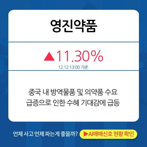 최적의 매매타이밍을 실시간으로 전송하여 투자자들에게 도움이 되고 있는 주식AI 라씨 매매비서가 오늘 분석한 오후장 급등종목은 버킷스튜디오(+27.90%), 조일알미늄(+21.43%), 국제약품(+13.33%) 영진약품(+11.30%), CJ ENM(+8.06%) 이었다.