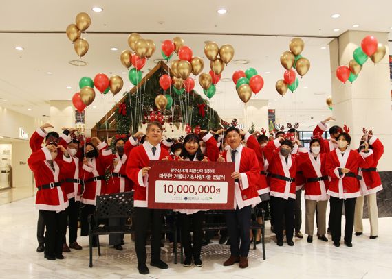 ㈜광주신세계는 연말연시를 맞아 지역 소외계층을 위한 '희망 산타 원정대'의 따뜻한 겨울나기&사랑 나눔 전달식을 가졌다고 15일 밝혔다. 사진=광주신세계 제공