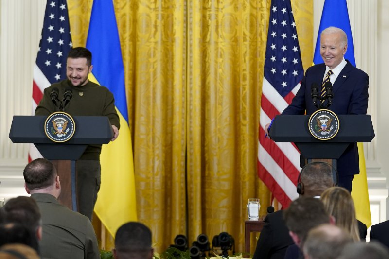 젤렌스키 대통령은 조 바이든 미 대통령과 공동 기자회견 자리에서 미국의 지원에 감사하는 한편 우크라이나의 주권과 영토는 타협의 대상이 아니라는 점을 분명히 했다.