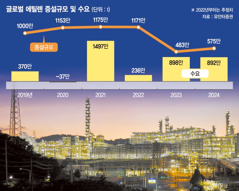 위정원 대신증권 연구원은 "올해 동북아 지역의 예상 폴리에틸렌 증설물량은 230만t으로, 2022년 대비 5.5% 증가할 것으로 예상된다"면서 "현재 미주와 유럽지역 화학제품 수요 약세로 동북아 지역 외 수출 확대가 가능한 시장이 제한적이기 때문에 공급과잉에 따른 스프레드 약세는 불가피할 것"이라고 전망했다.