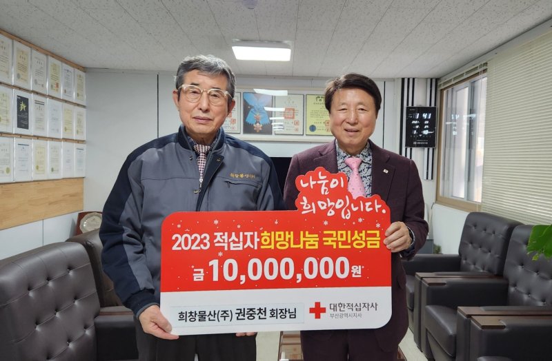 희창물산 권중천 회장은 "평소 지속가능한 부산을 위해 노력해온 적십자의 활동에 동참할 수 있어 기쁘다"면서 "앞으로 부산의 나눔문화 확산을 위해 더욱 노력하겠다"고 밝혔다.