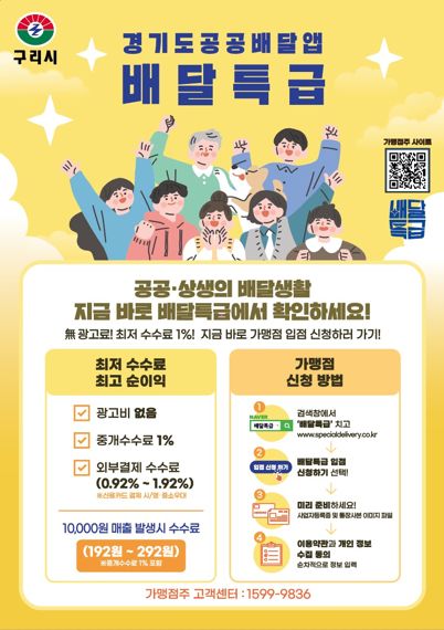 25일 구리시에 따르면 ‘배달특급’은 외식업 종사 소상공인을 위한 공공배달 플랫폼으로 광고비가 없고, 중개수수료는 1%로 매우 저렴하다는 장점을 지녔다.
