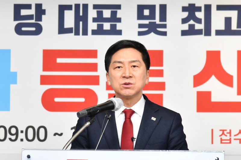 국민의힘 당권주자인 김기현 의원이 2일 서울 여의도 중앙당사에서 후보 등록을 마치고 정견발표를 하고 있다. (공동취재사진) 사진=뉴시스