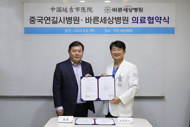 바른세상병원과 중국 연길시병원은 의료기술 및 학술 교류, 환자 치료 협조 등 상호 의료보건 발전과 의료서비스 향상에 이바지할 수 있도록 적극 협력할 예정이다.