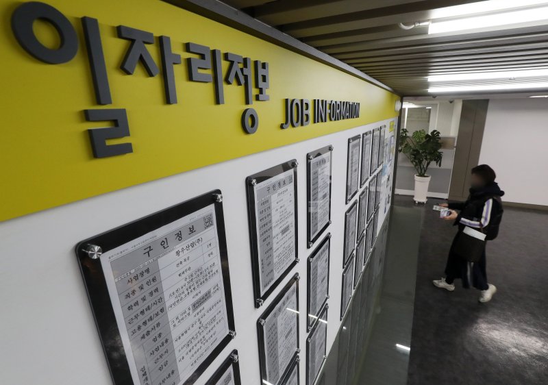 서울 마포구 서울고용복지플러스센터 일자리정보 게시판에 구인구직 안내문이 붙어 있다. 2023.3.15 ⓒ News1 이동해 기자