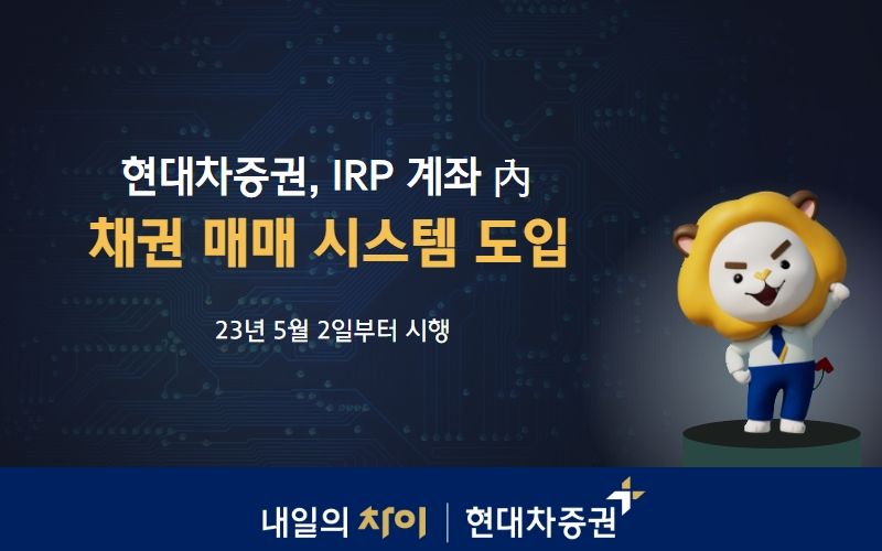 [파이낸셜뉴스] 현대차증권이 2일 개인형퇴직연금(IRP) 가입자 대상 계좌 내 채권 매매서비스를 시작한다.