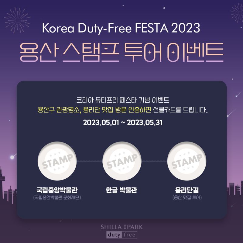 신라아이파크면세점이 위치한 서울 용산구의 관광 활성화도 지원한다. 이를 위해 ‘용산 스탬프 투어’ 이벤트를 열고 행사 기간 국립중앙박물관, 한글박물관 등 용산구의 관광 명소와 용산역 상권 ‘용리단길’ 맛집 방문을 한 고객 대상으로 선불카드를 추가 증정한다. 박물관에서 촬영한 사진과 용리단길에 위치한 식당 영수증을 신라아이파크면세점 멤버십 데스크에 제시하면 최대 1만5000원의 선불카드를 받을 수 있다.