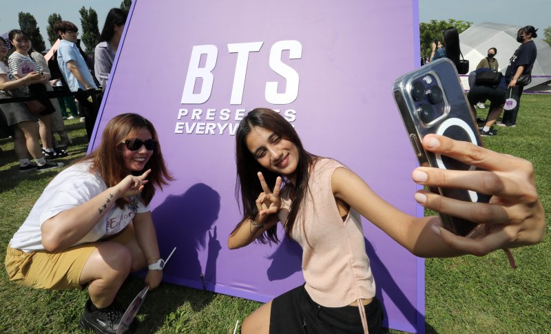 해외에서 가보고 싶은 관광지로 서울에 대한 관심도가 높아지고 있다. 6월 17일 오후 방탄소년단(BTS) 데뷔 10주년 기념행사 'BTS 페스타'가 열린 서울 여의도한강공원을 찾은 인도에서 온 아미들이 기념사진을 찍고 있다. 뉴스1