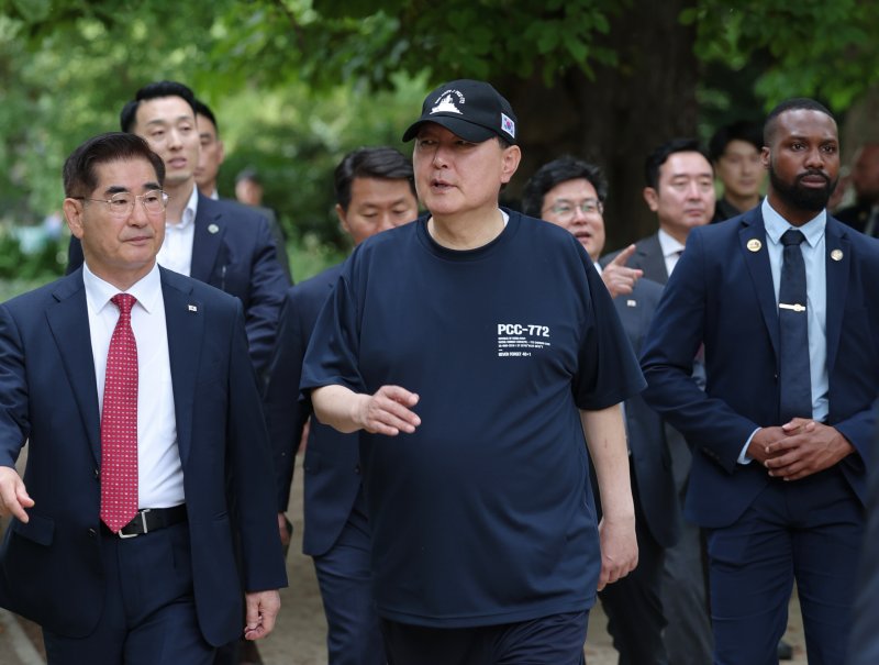윤 대통령은 천안함 로고가 새겨진 티셔츠와 모자를 쓰고 산책에 나섰으며, 산책 도중에는 반려견과 함께 산책 중인 파리시민과 인사를 나누기도 했다.