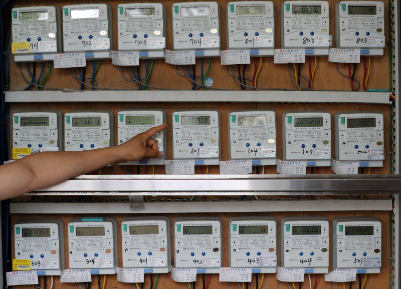 지난 13일 서울 시내 한 오피스텔에서 관리자가 전기 계량기를 살펴보고 있다./뉴시스