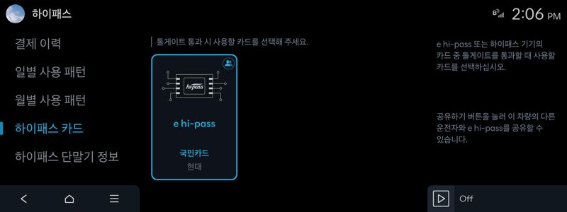 현대차 '디 올 뉴 그랜저', '디 올 뉴 코나', 기아 ‘EV9’차량에서 사용이 가능하며, 향후 e hi-pass가 탑재되어 출시되는 현대차, 기아, 제네시스의 여러 차종으로 확대 적용될 예정이다.