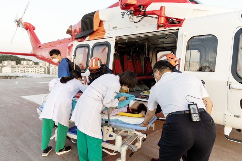 광주에서 출발한 헬기는 제주공항에서 환자 A씨와 보호자를 태우고 19시 50분 이대서울병원 옥상 헬리포트에 안착했다. 환자는 바로 응급중환자실(EICU)에 이송해 약물 치료를 시행했고 안정을 찾았다.