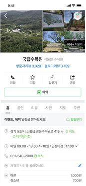 수목원에 대한 리뷰나 요금 정보 등을 알아본 후 즉시 예약할 수 있고 인천국제공항까지 경로뿐 아니라 이제는 국민이 이용하려는 항공편 탑승구까지 최적의 경로와 소요 시간도 알려준다.