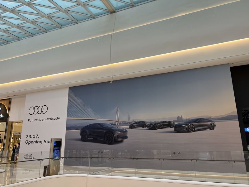 오는 8월 1일 복합쇼핑몰 스타필드 하남에 오픈 예정인 아우디의 신규 전시장 준비 모습. 사진=최종근 기자