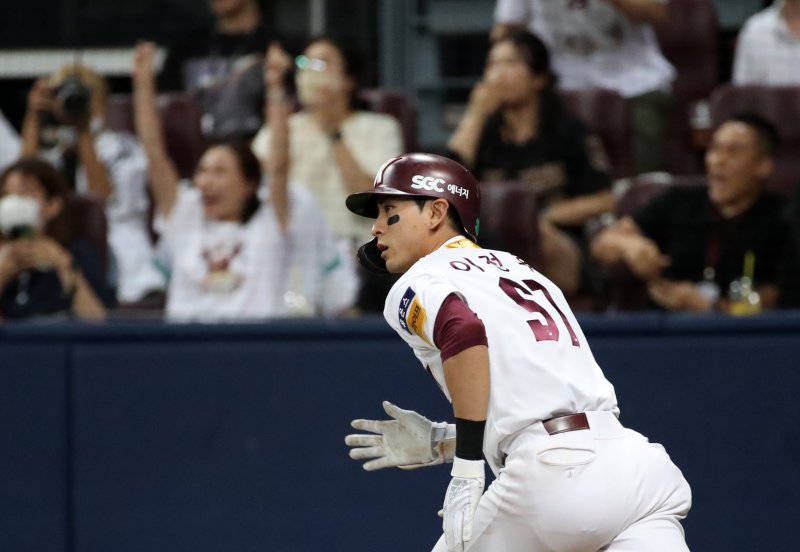 [서울=뉴시스] 조성우 기자 = 지난 11일 오후 서울 구로구 고척스카이돔에서 열린 2023 KBO 리그 KT 위즈와 키움 히어로즈의 경기, 키움 8회말 공격 2사 주자 1루서 이정후가 안타를 때리며 출루하고 있다. 2023.07.11. xconfind@newsis.com /사진=뉴시스