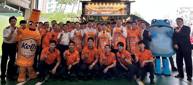 하이트진로가 지난 12일 경남 마산소방서에서 감사의 간식차 행사를 진행했다. /사진=하이트진로
