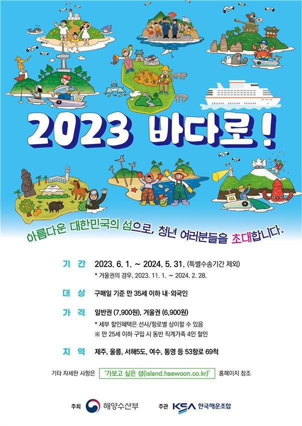 바다로는 만 35세 이하의 젊은이들이 국내 바다와 섬을 여행할 수 있도록 하는 연안 여객선 할인 이용권이다.