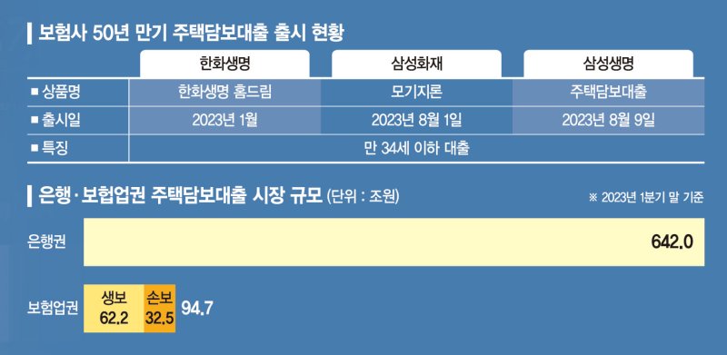 실제 보험사들의 1·4분기 말 부동산 담보대출 채권은 약 95조원으로 생명보험업계가 62조원, 손해보험업계는 32조원 규모다. 주담대 시장에서 가장 큰 비중을 차지하는 은행권 주담대 규모는 1·4분기 말 약 642조원을 기록했다. 하지만 금융당국이 최근 가계부채 주범으로 50년 만기 주담대 상품을 지목하면서 보험업계도 당국의 움직임을 주시하며 주담대 상품 출시에 신중한 태도를 보이고 있다.
