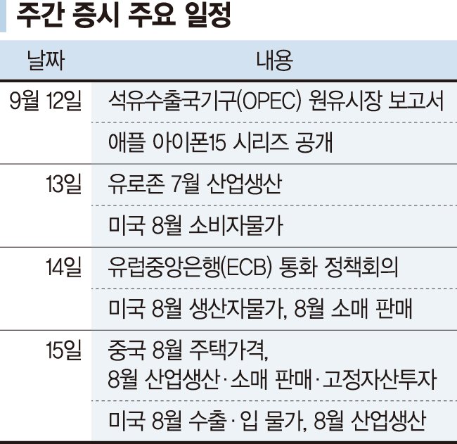 최유준 신한투자증권 연구원은 "미국 8월 물가지표의 영향력이 높아졌다"며 "긴축과 금리가 주식시장의 최대 변수로 작용하고 있고, 이전보다 마이크로한 지표에 민감하게 반응하고 있기 때문에 물가지표에서 방향성에 대한 힌트를 찾을 필요가 있다"고 말했다. 이경민 대신증권 연구원은 "유가 상승이 금리 상승으로 이어지는 연결고리를 미국 CPI, 소매판매, 제조업 지표가 약화시켜줄 수 있을지 관건"이라고 내다봤다.