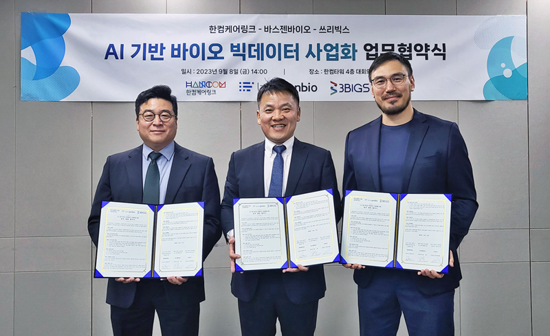 바스젠바이오·쓰리빅스와 'AI 기반 바이오 빅데이터 사업' 협약