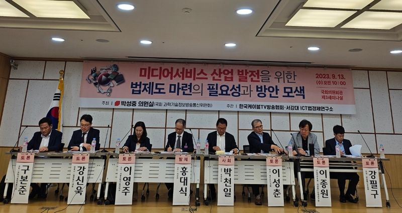 국민의힘 박성중 의원실과 한국케이블TV방송협회(KCTA), 서강대 정보통신기술(ICT)법경제연구소는 13일 국회에서 이 같은 내용의 새로운 법안을 제안하는 '미디어서비스 산업발전을 위한 법제도 마련의 필요성과 방안모색'을 주제로 세미나를 개최했다. 홍대식 서강대 교수는 기존 방송법, IPTV법, 전기통신사업법 등으로 흩어진 방송 규제 체제를 한 곳으로 통합한 '미디어서비스사업법안(가칭)'을 제안했다.