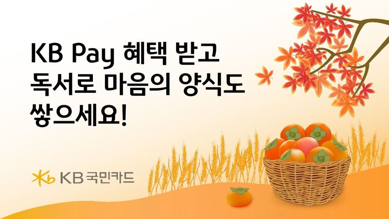 [파이낸셜뉴스] KB국민카드가 가을을 맞아 KB페이로 도서를 구매하면 즉시 할인이나 포인트 적립 등 다양한 혜택을 제공하는 행사를 진행한다고 15일 밝혔다.