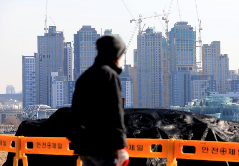지난 2월 서울의 한 아파트 단지 건설현장에서 공사가 진행되고 있다. /사진=뉴스1