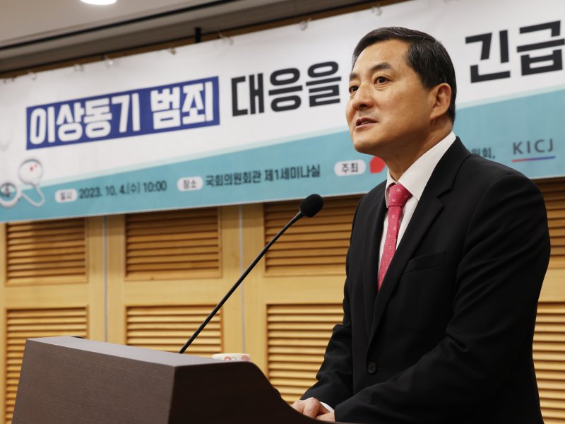 박대출 국민의힘 정책위의장이 4일 오전 서울 여의도 국회 의원회관에서 열린 이상동기 범죄 대응을 위한 긴급토론회에서 개회사를 하고 있다. 사진=뉴스1
