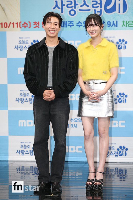 [FN스타 이승훈 기자] 배우 이현우, 박규영이 11일 서울 상암동 MBC 방송센터 골든마우스홀에서 진행된 MBC 새 수요드라마 '오늘도 사랑스럽개' 제작발표회에 참석했다.'오늘도 사랑스럽개'는 키스를 하면 개로 변하는 저주에 걸린 여자와 그 저주를 풀 수 있는 유일한 치트키지만 개를 무서워하는 남자의 댕며드는 예측불허 판타지 로맨스 드라마.차은우, 박규영, 이현우 등이 출연하며 오늘 11일 첫 방송된다.totopurdy_star@fnnews.com fn스타 이승훈 기자