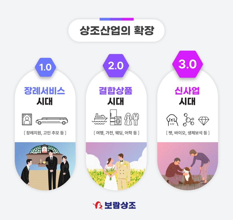 보람상조는 장례서비스가 주축이 된 시대(1.0)와 다양한 결합상품을 선보인 시대(2.0)를 넘어 신성장동력 확보를 위한 신사업 진출을 통해 상조3.0의 시대를 맞이하고 있다.