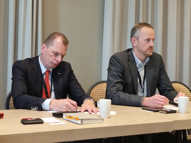 지난 10월 31일(현지시간) 네덜란드 델프트시 한 호텔에서 프랑수와 반 데르 폴스 프랑스 카이오티 총판사 대표(왼쪽)와 크눗 짐머 대동 독일 총괄 영업 매니저가 질문을 듣고 있다. 사진=장유하 기자