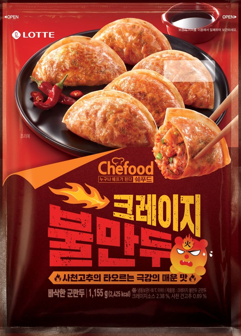 롯데웰푸드는 가정간편식 만두제품 ‘쉐푸드 크레이지 불만두’를 출시하고 매운맛 만두 시장 공략에 나선다고 9일 밝혔다.