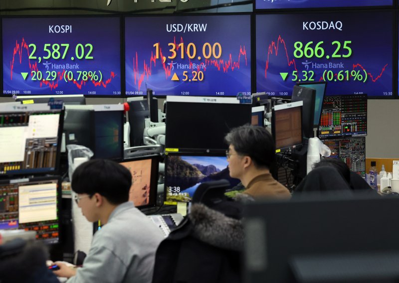 서울 중구 하나은행 명동점 딜링룸 전광판에 코스피 지수가 표시돼 있다. 사진=뉴스1