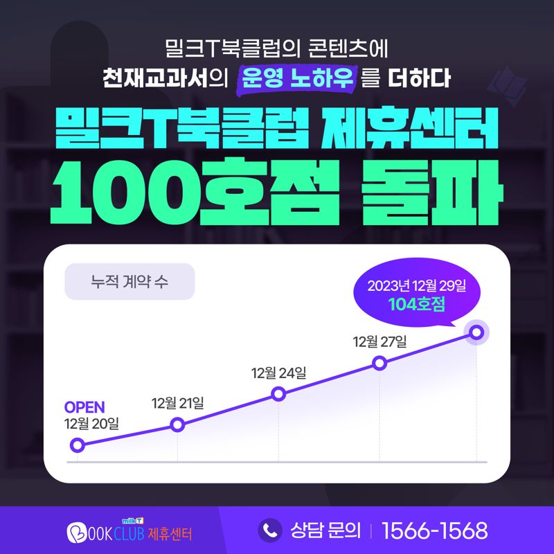 천재교과서에 따르면 밀크T북클럽 제휴센터는 오픈 이후 누적 계약 건수가 빠르게 증가해 지난 12월29일 기준 104개 제휴센터가 계약을 완료했다.