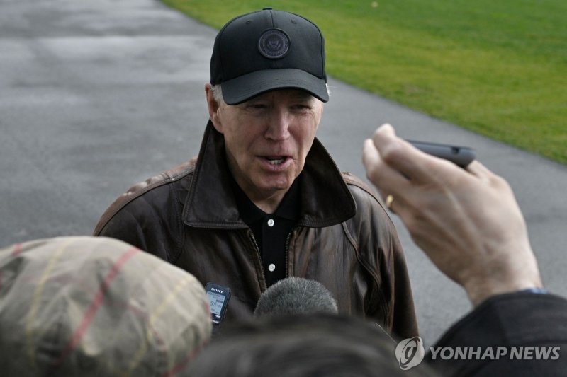조 바이든 미국 대통령이 13일(현지시간) 캠프 데이비드로 휴가를 떠나기 직전 워싱턴 백악관에서 기자들에게 이번 대만 선거 결과에 대해 기존의 원칙적인 답변을 되풀이하고 있다. AFP연합뉴스