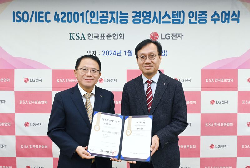 LG전자 H&A사업본부는 지난 19일 서울 강남구 한국표준협회로부터 'AI 경영시스템' 인증서를 받았다고 22일 밝혔다. AI 경영시스템은 국제표준화기구(ISO)와 국제전기기술위원회(IEC)가 공동 제정한 AI 경영체계 전반에 관한 국제표준이다. AI 기반 제품이나 서비스를 개발·사용하는 조직이 AI 시스템을 체계적으로 구축해 기획부터 폐기까지 전 과정에서 책임감 있게 AI를 활용하고 있는지를 평가한다.