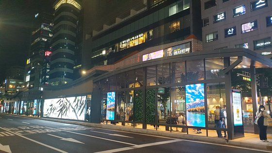홍대입구 버스중앙차로 정류소. 디지털 사이니지라고 불리는 광고 패널이 설치된 모습. /사진=중앙일보