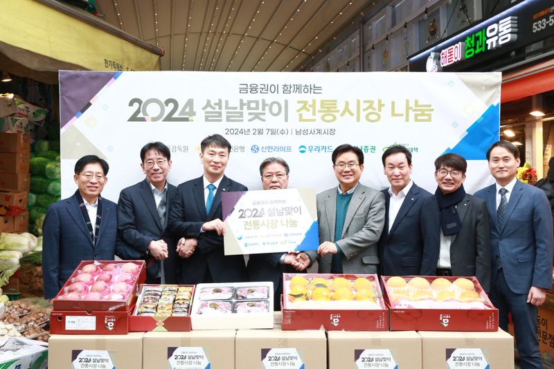 금융권은 전통시장 활성화에 기여하고 소외된 이웃이 따뜻한 명절을 보내는 데 보탬이 될 수 있도록 매년 설에 전통시장을 방문해 나눔 활동을 실시하고 있다. 올해에는 금융감독원을 비롯해 KB국민은행·하나증권·신한라이프·우리카드 등 5개 기관이 나눔에 참여했다.
