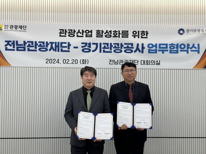 【파이낸셜뉴스 수원=장충식 기자】 경기관광공사는 전남관광재단과 관광산업 활성화와 국내·외 관광객 유치 확대를 위한 업무협약을 체결했다고 20일 밝혔다.