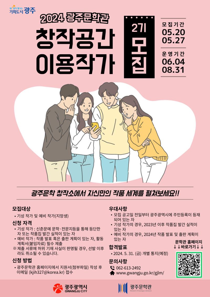 광주문학관은 참신하고 역량 있는 '제2기 창작공간 이용 문학 작가'를 모집한다고 17일 밝혔다.