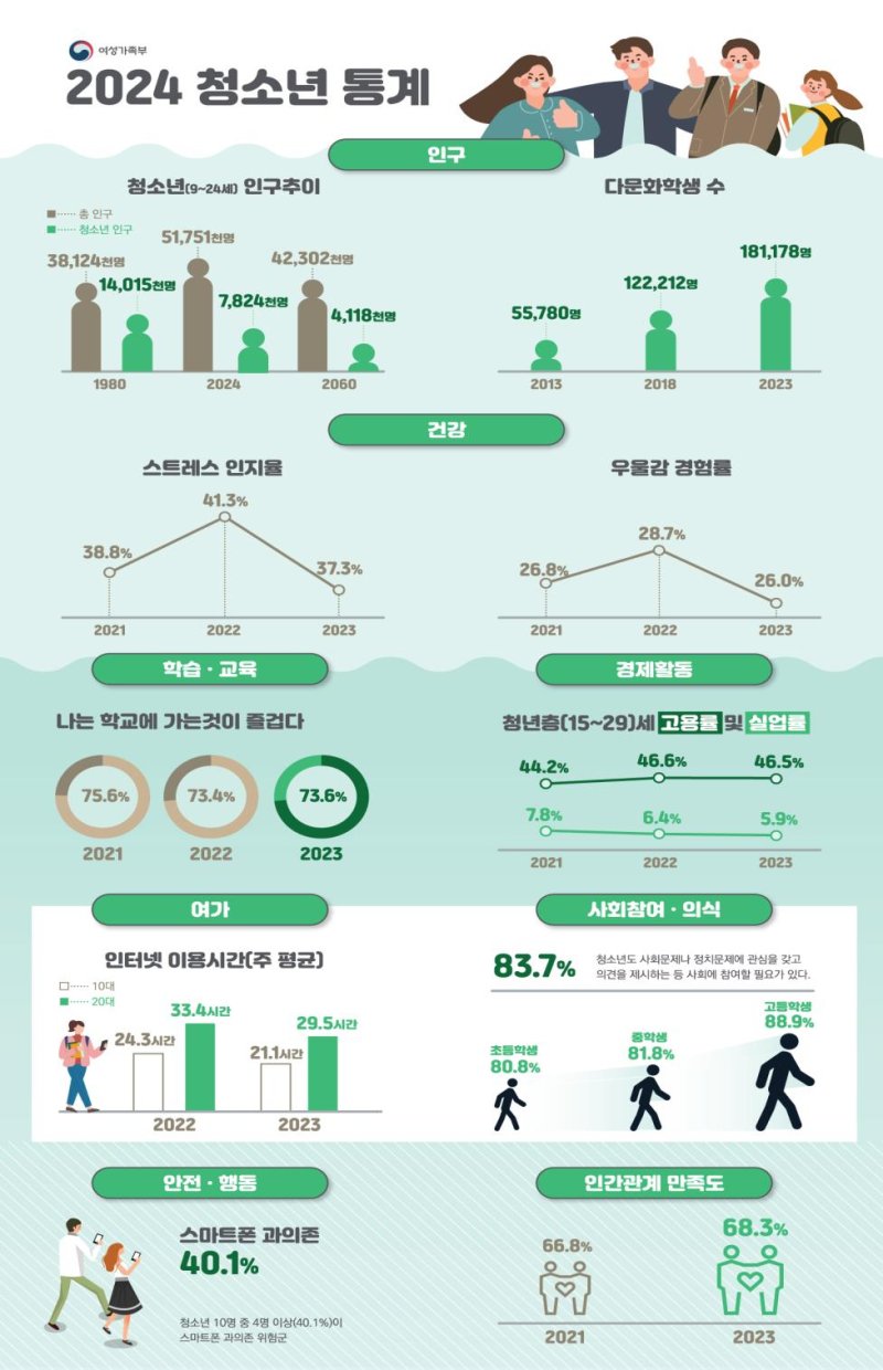 여성가족부는 5월 청소년의 달을 맞아 한국청소년정책연구원과 함께 이 같은 내용이 담긴 '청소년 통계'를 29일 발표했다.