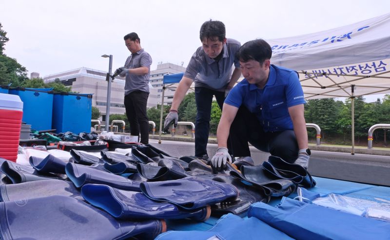 삼성전자서비스 엔지니어들이 장마철을 대비해 '수해 복구 장비'를 사전 점검하고 있다. 삼성전자서비스 제공