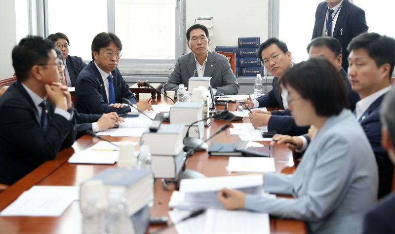 (서울=뉴스1) 이승배 기자 = 김주영 국회 환노위 고용노동법안심사소위원장이 16일 서울 여의도 국회에서 열린 환경노동위원회 제2차 고용노동법안심사소위원회를 주재하고 있다. 이날 환노위 고용노동소위에선 야당 단독으로 노란봉투법이 의결됐다. 2024.7.16/뉴스1 /사진=뉴스1화상