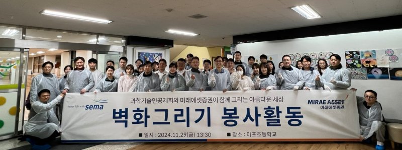미래에셋증권과 과학기술인공제회는 지난달 29일 서울시 마포구에 위치한 마포초등학교에서 실내 계단 벽화 작업을 하는 봉사활동을 진행했다고 3일 밝혔다.