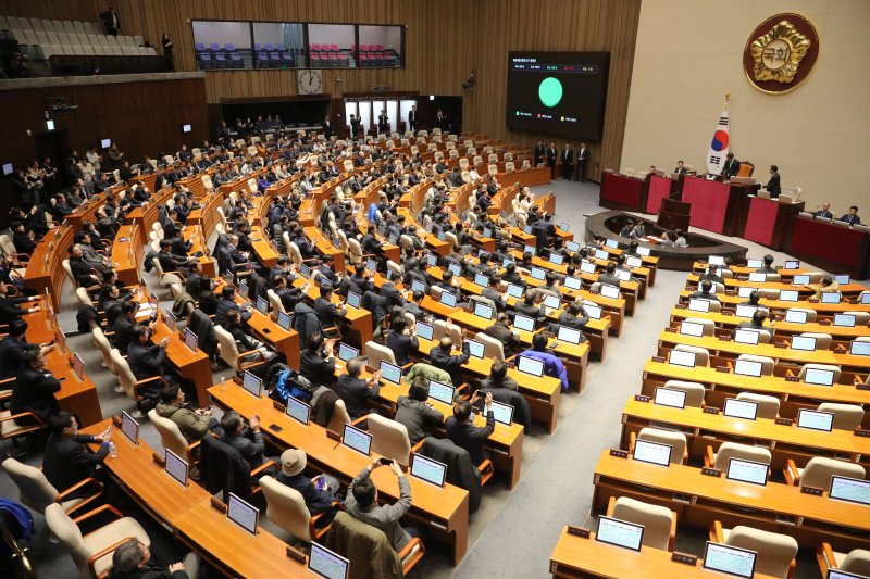 윤석열 대통령이 비상계엄령을 선포한 가운데 4일 새벽 서울 여의도 국회 본회의장에서 열린 본회의에서 비상계엄 해제 요구 결의안이 통과되고 있다. 사진=뉴스1