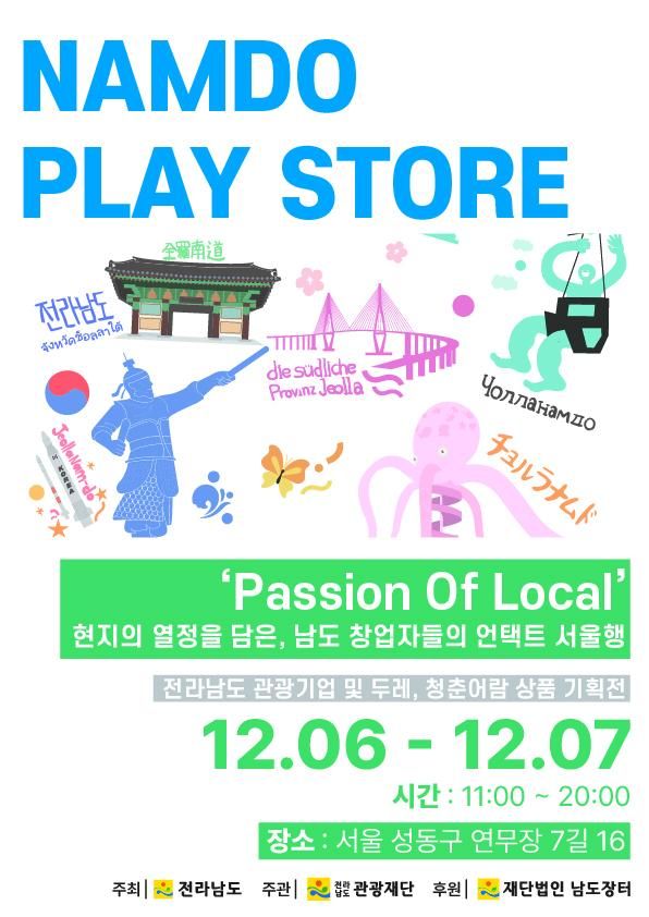 전남도가 오는 6~7일 서울 성수동에서 지역 관광기업 제품 홍보 및 판로 확대 지원을 위한 '남도 플레이스토어'를 운영한다. 전남도 제공