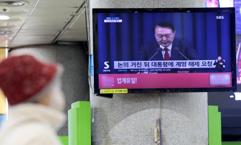 윤석열 대통령이 비상계엄을 선포한 지 6시간여 만에 계엄을 해제한 4일 오전 인천 미추홀구 인천종합버스터미널 대합실에서 한 시민이 관련 방송을 시청하고 있다. 뉴시스