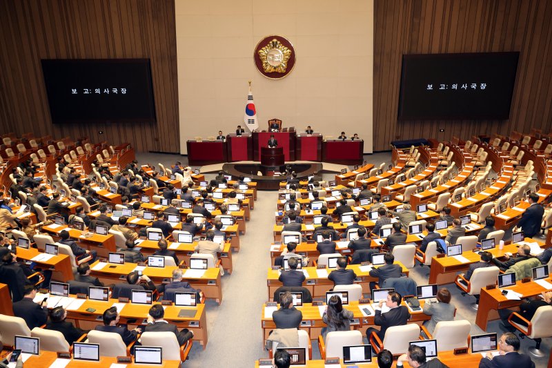 정명호 국회 의사국장이 5일 오전 서울 여의도 국회에서 열린 제418회 국회(정기회) 제16차 본회의에서 야6당이 공동 발의한 윤석열 대통령 탄핵소추안 등을 보고하고 있다. 뉴시스